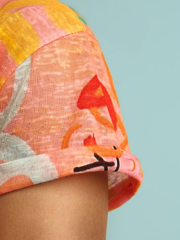 Camiseta cuello pico y de manga corta, total print cuadro "Dime que todo es Posible".