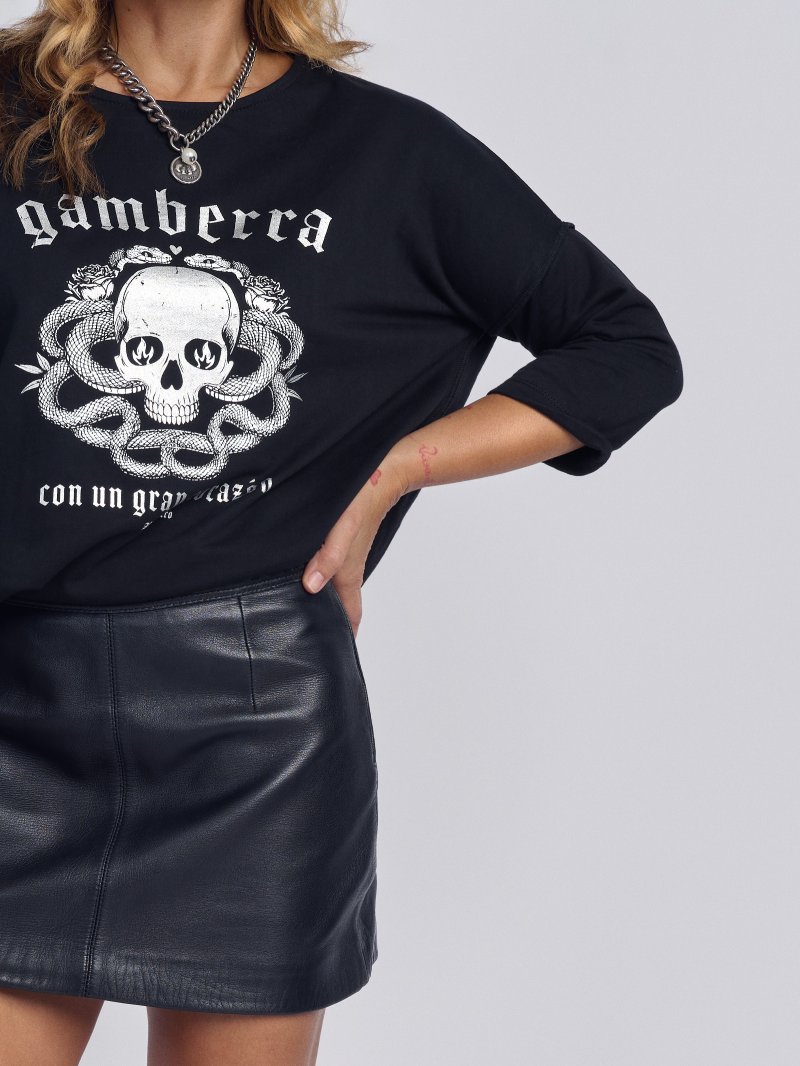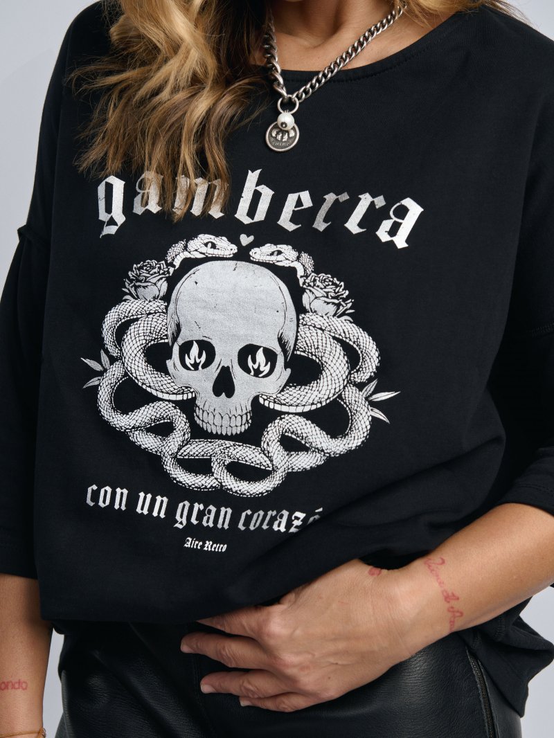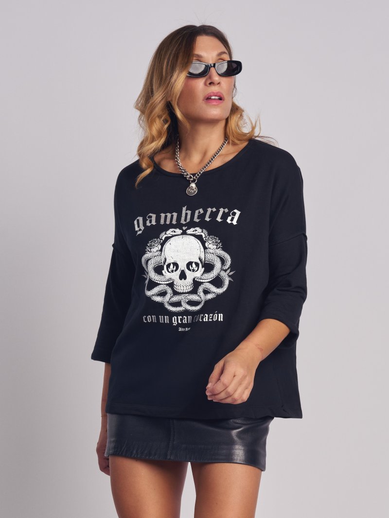 Jersey negro con felpita fina en el interior muy gustosa y agradable, serigrafía blanca y una plata muy especial! tiene manguita 3/4 y cuello abierto!