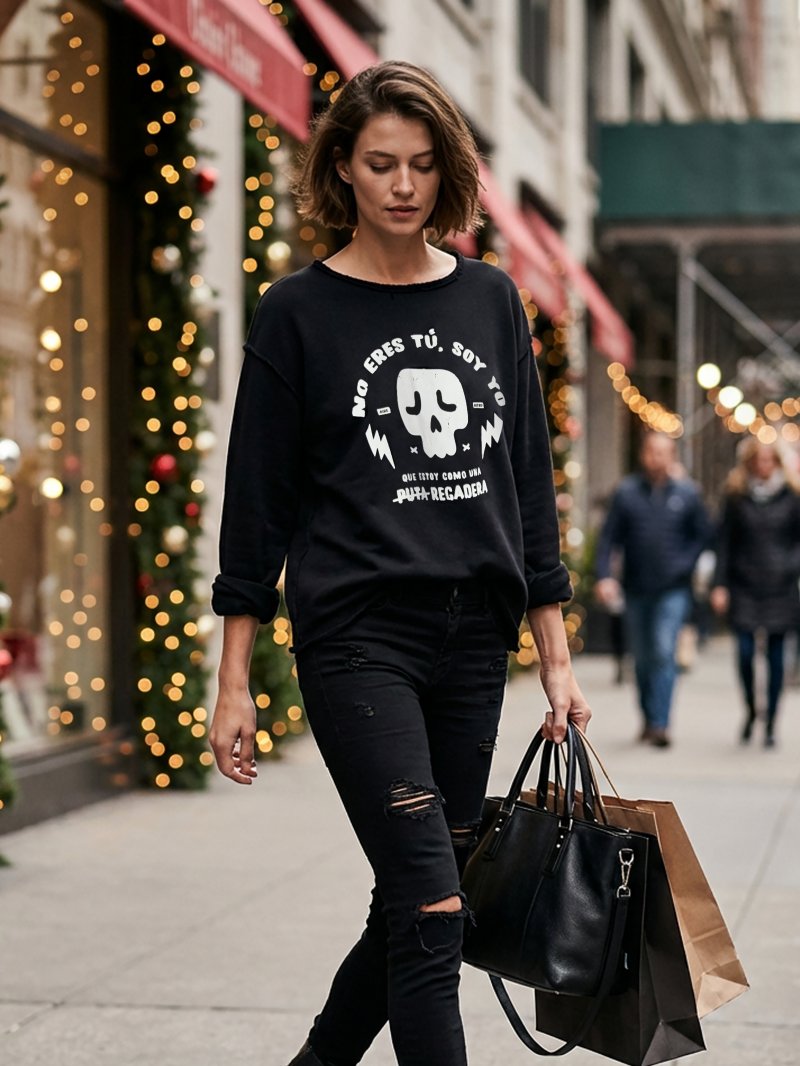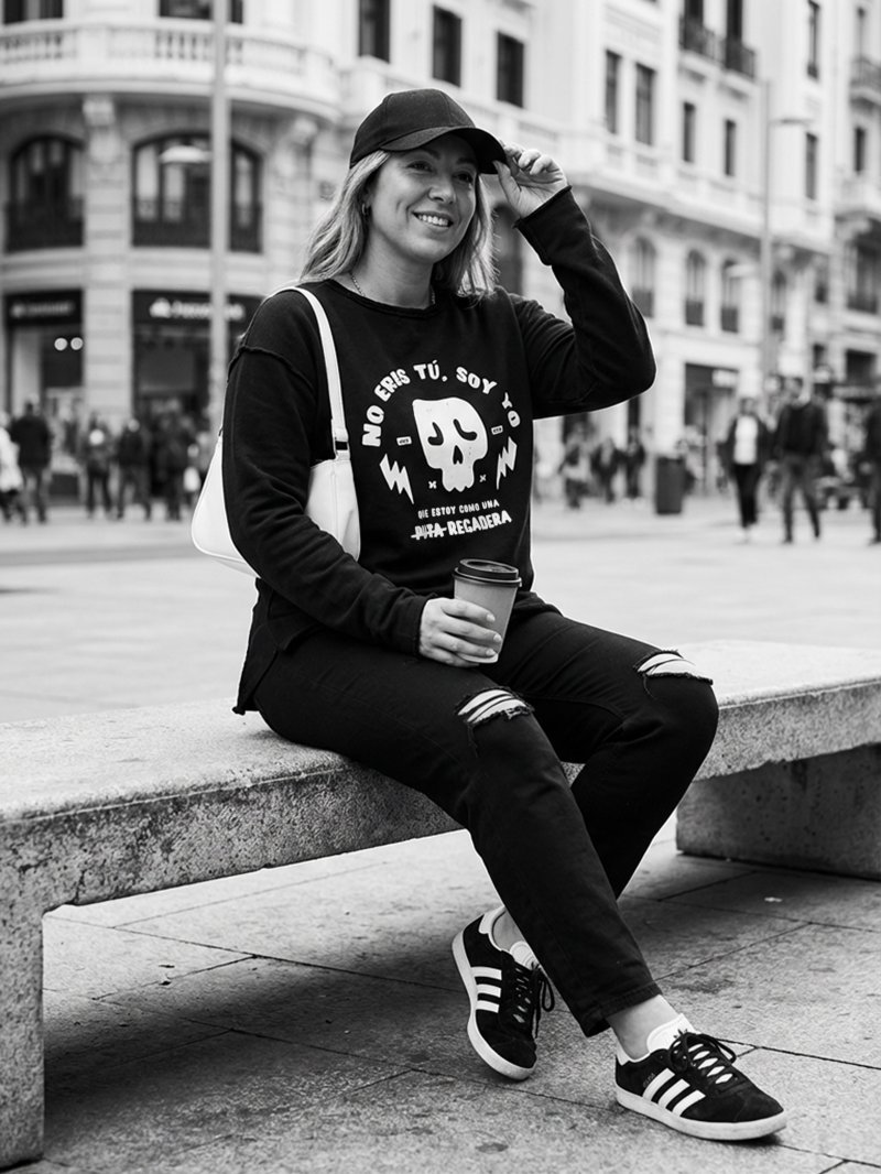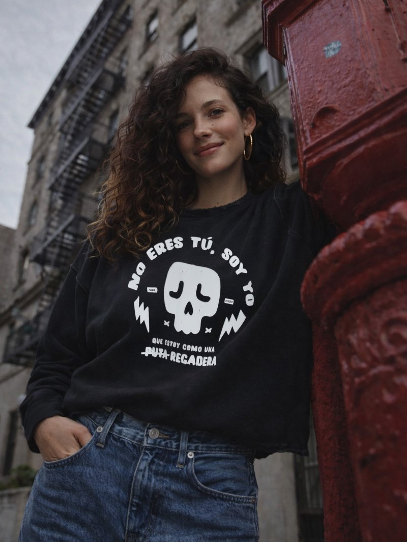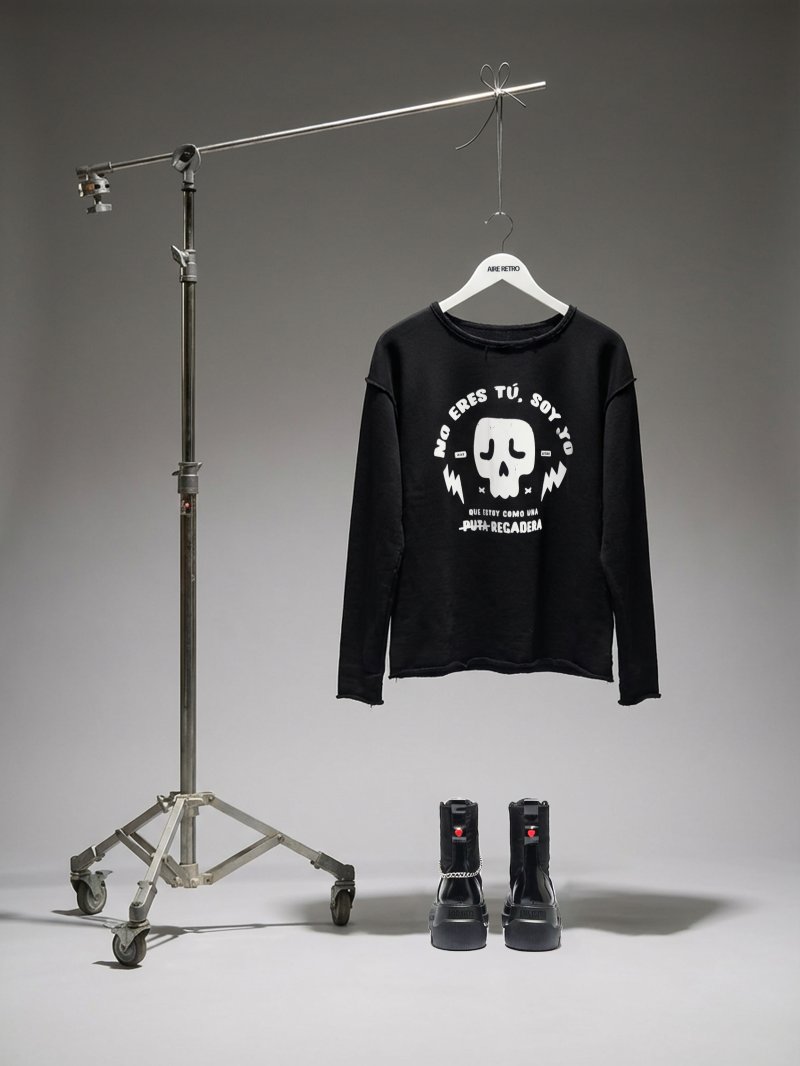 Sudadera negra 100% algodón premium con un estilo clásico, acabados y remates deshilachados para el efecto desenfadado que tanto nos mola!