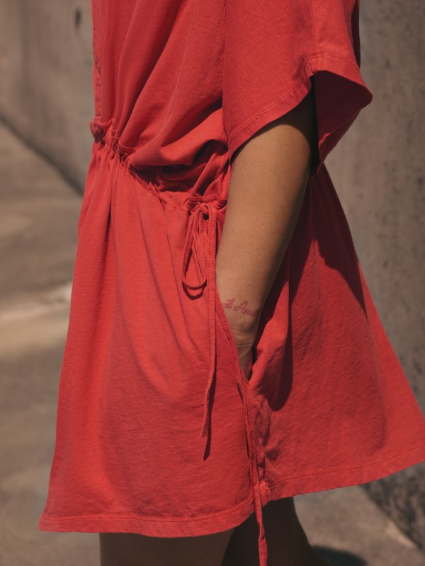 Vestido oversize de algodón 100% con lavado fade out y cordones ajustables para darle el rollo y la comodidad que necesites en cada momento.