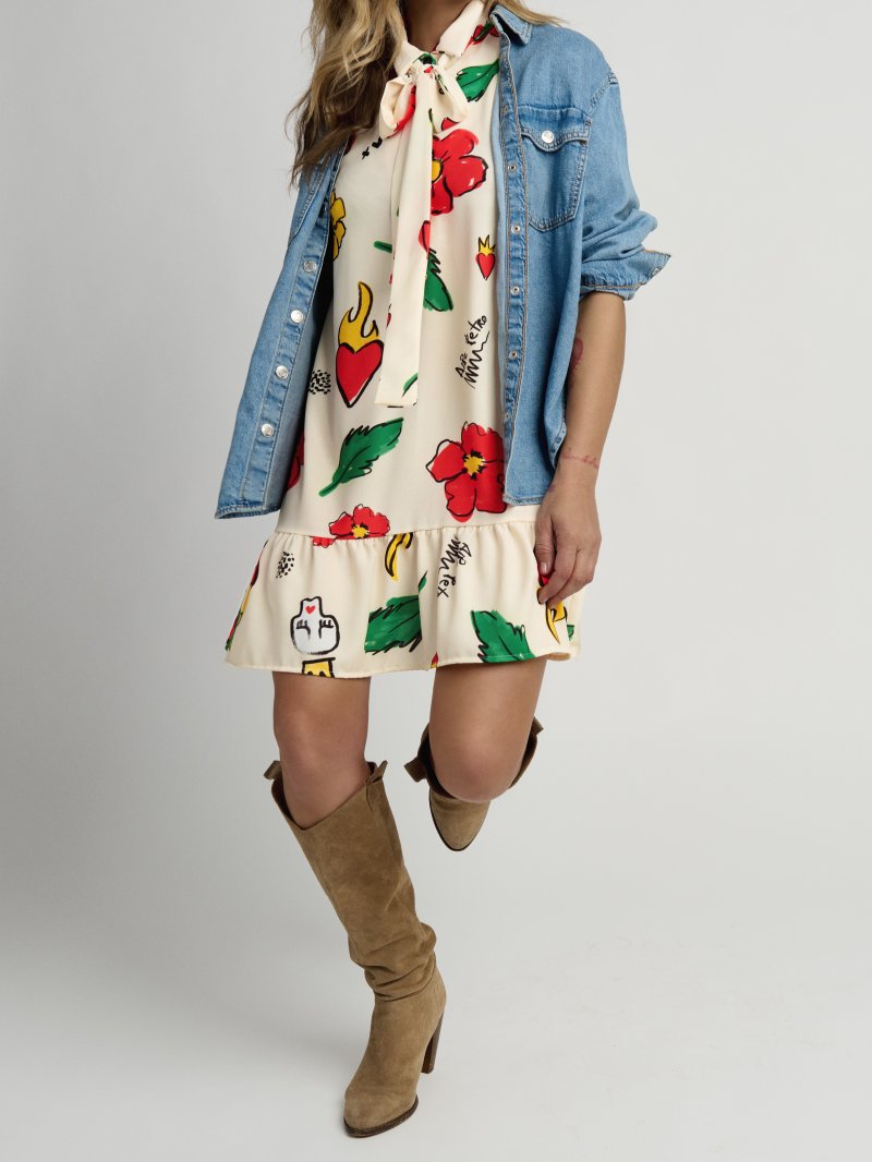 VESTIDO "FLORAL" CRUDO